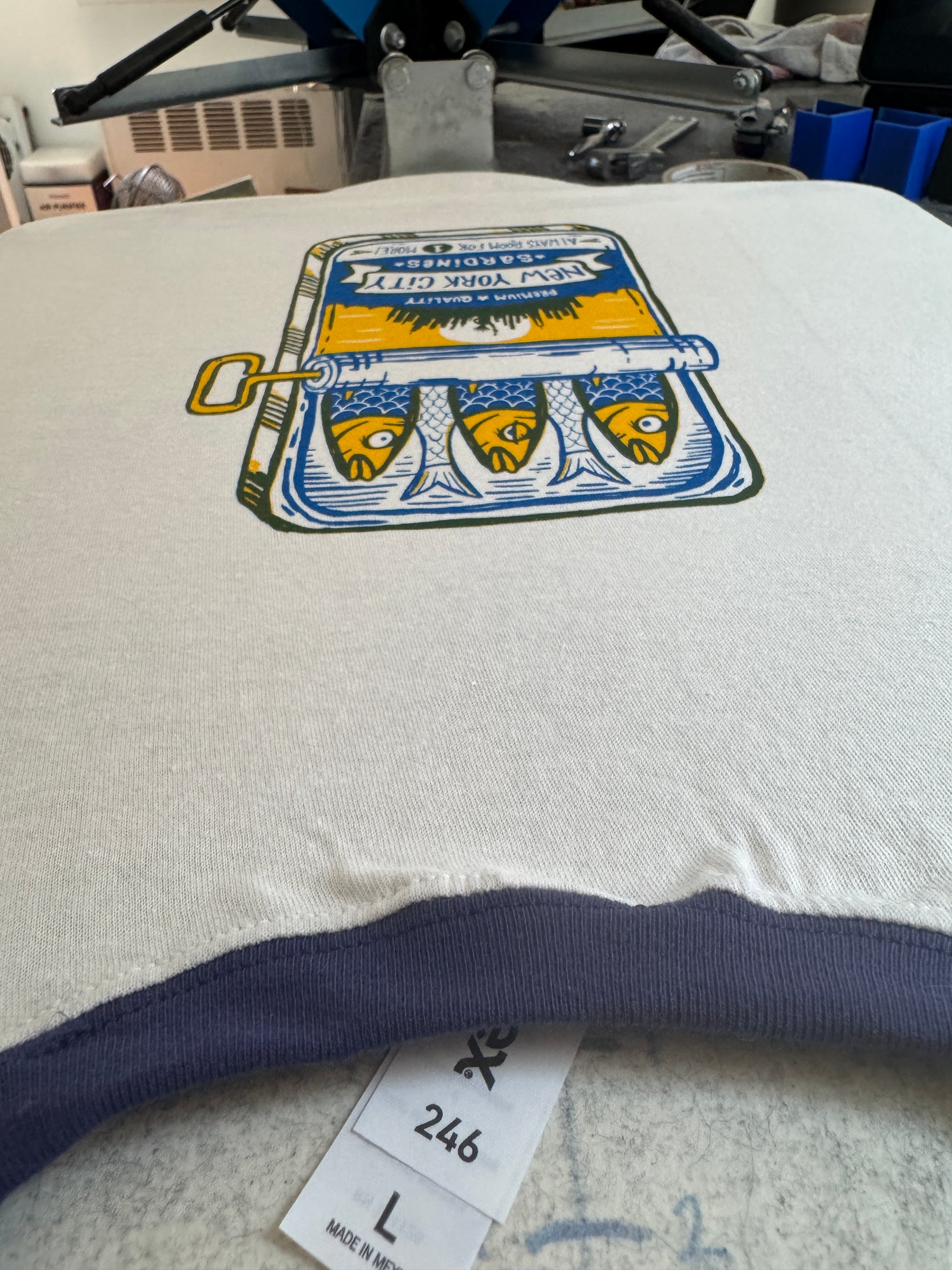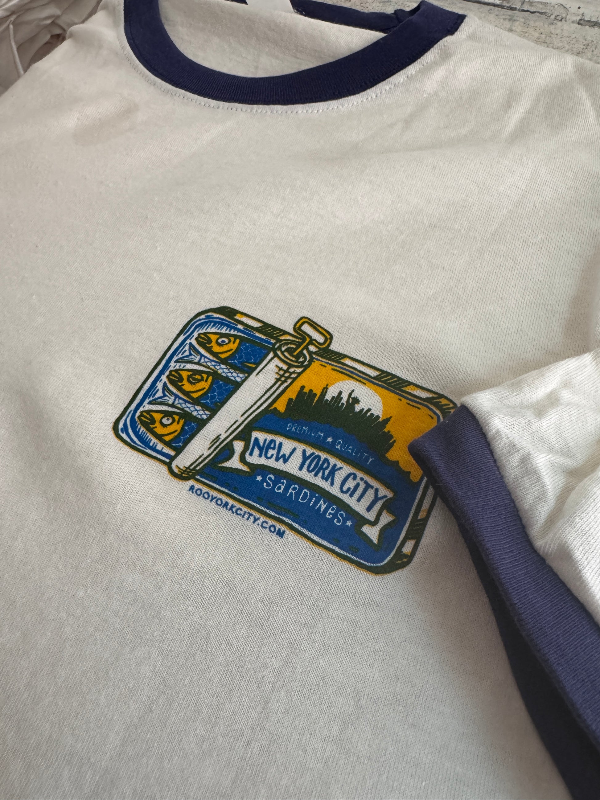 New York City SARDINES CAN Ringer Tee (original // hand printed // retro vintage style)